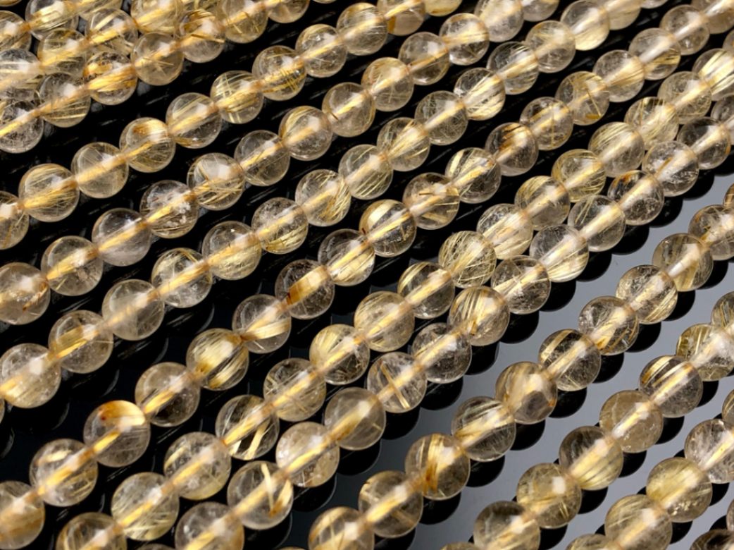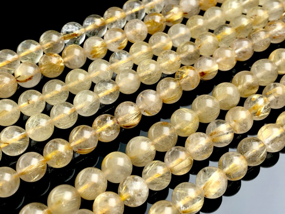 びっしり金針★金運を司る人気石★天然石ビーズ/タイチンゴールドルチル(Rutilelated quartz/針入り水晶)/ラウンド...