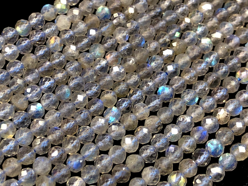 抜群の透明感!美麗ブルーのラブラドレッセンス★天然石ビーズ/ラブラドライト/ファセットカット/3mm/1連【天然石/パワーストーン...