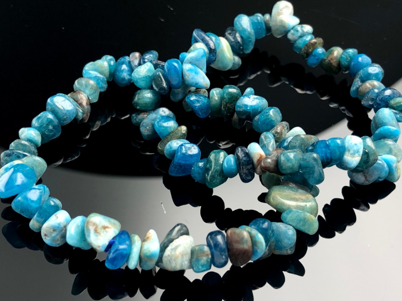 艶々ブルー★絆を強める石★天然石ブレスレット/アパタイト(apatite・燐灰石)/さざれカット/約3-8mm/1本【天然石/パワ...