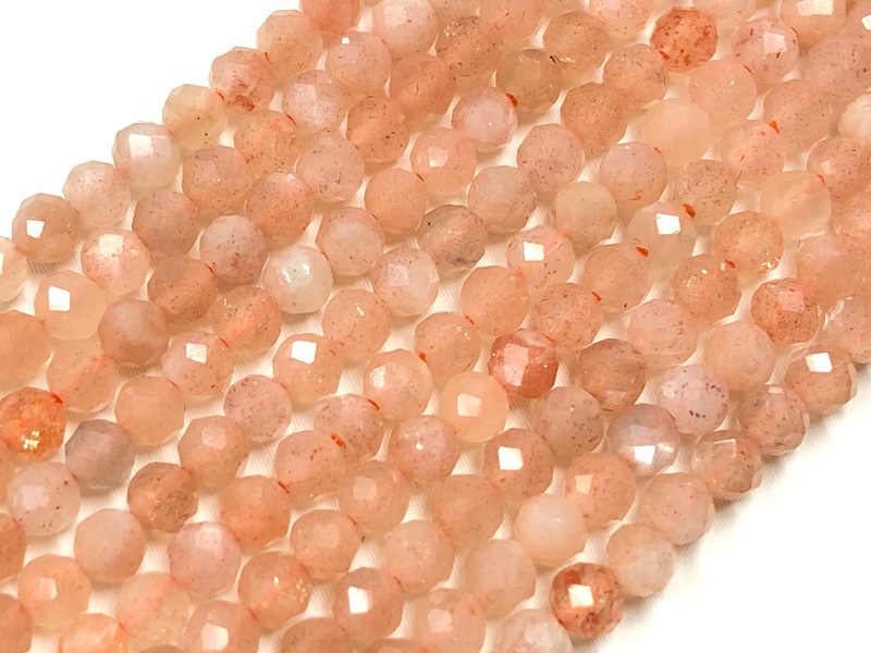 希少色★月のような光の石★天然石ビーズ/オレンジムーンストーン(Moonstone、月長石)/ファセットカット/約3mm/1連【天...