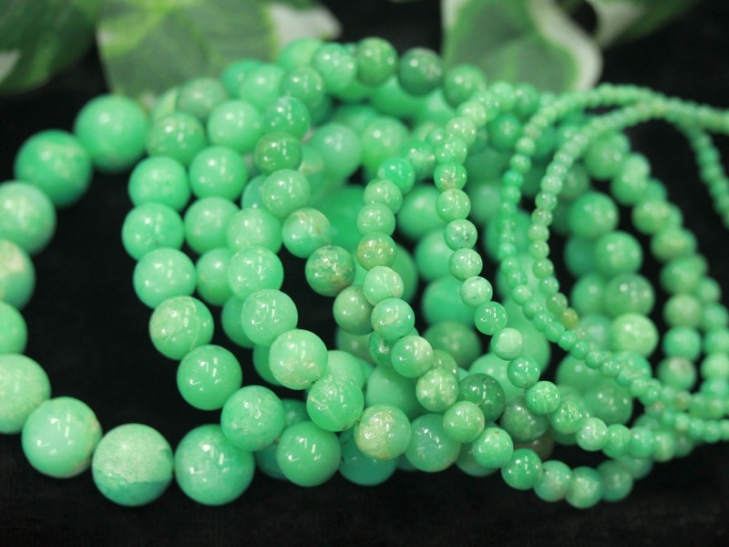希少!★優しいアップルグリーンカラー★夢や希望の道を開く石/天然石ビーズ/クリソプレーズ(Chrysoprase/緑玉髄/オースト...