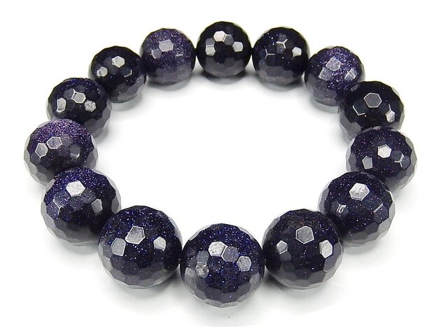 キラキラ星空模様ブルーゴールドストーン約16mm前後ミラーカット大玉ブレスレット