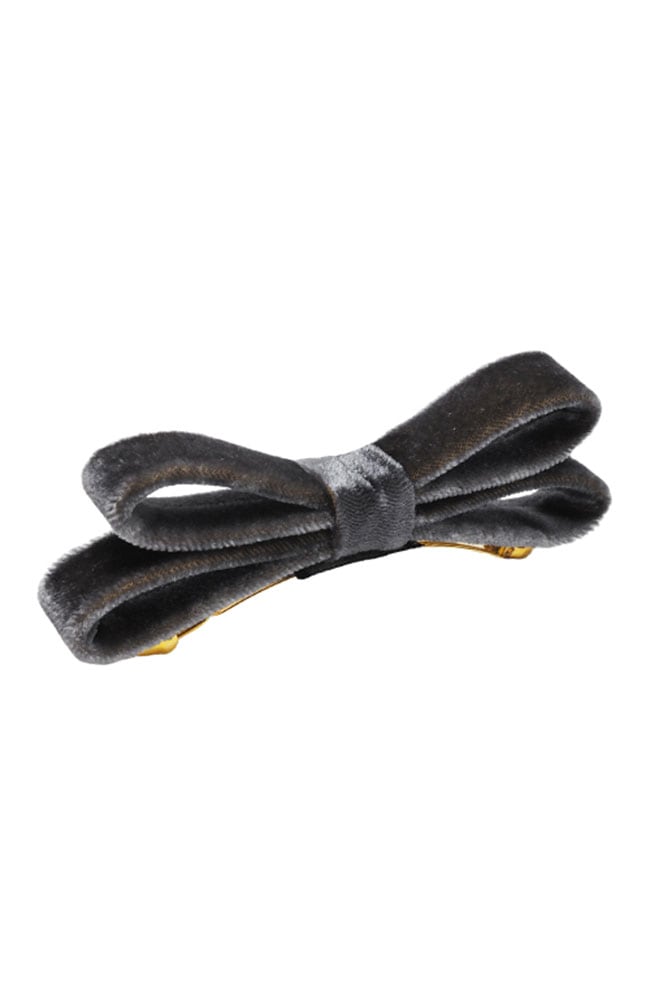 ベロア スモール クチュール ボウ バレッタ (グレー)