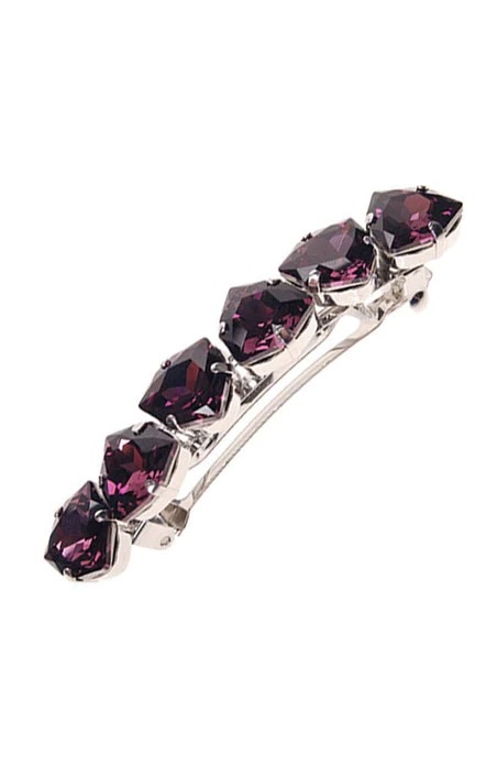 クリスタル ティアドロップ バレッタ (アメジスト/シルバー)