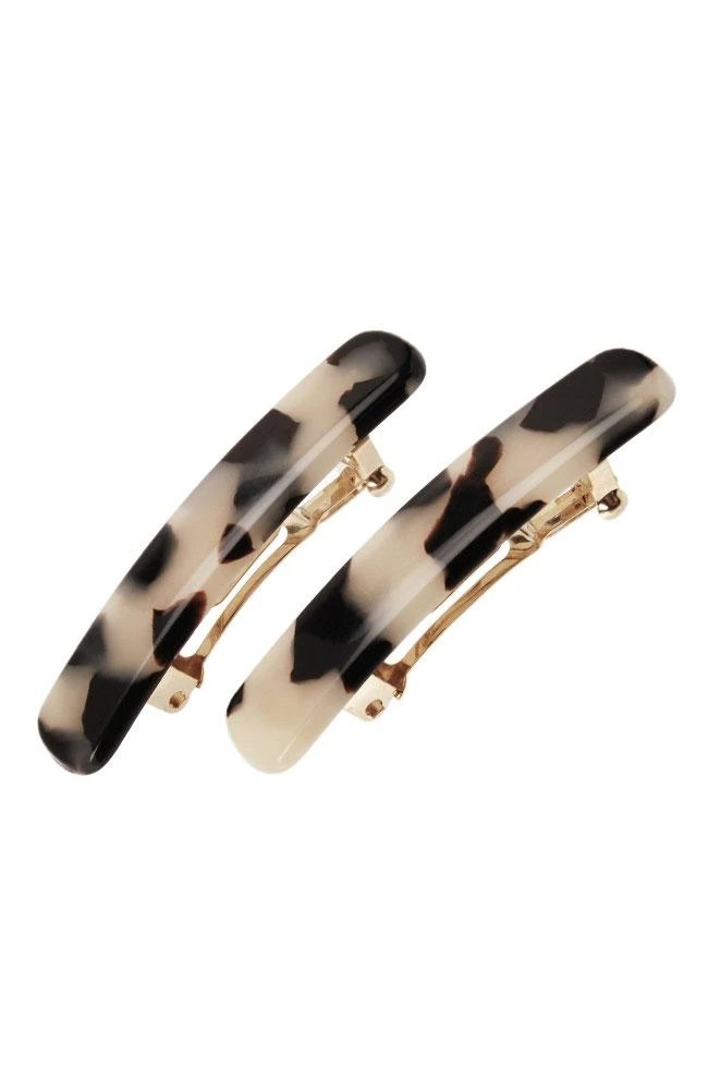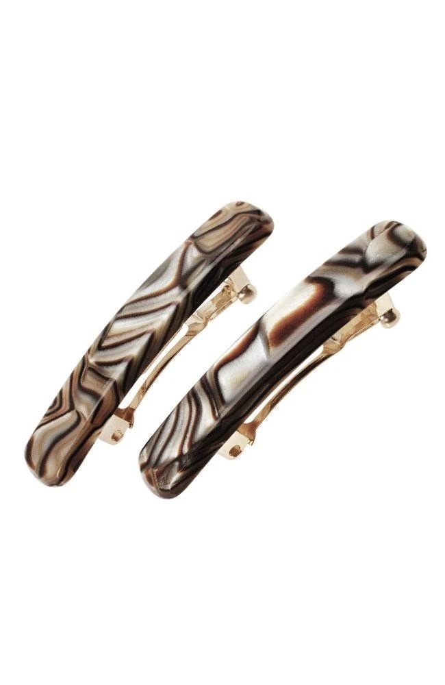 ミニ レクタングル バレッタ 2個セット (キャラメルホーン)