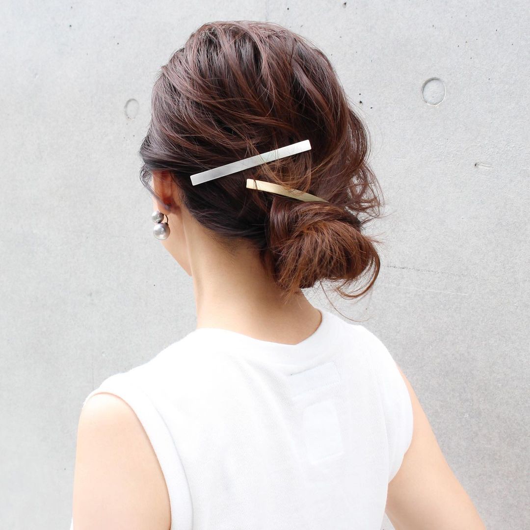 ミニ レクタングル バレッタ 2個セット (アイボリートーキョー)
