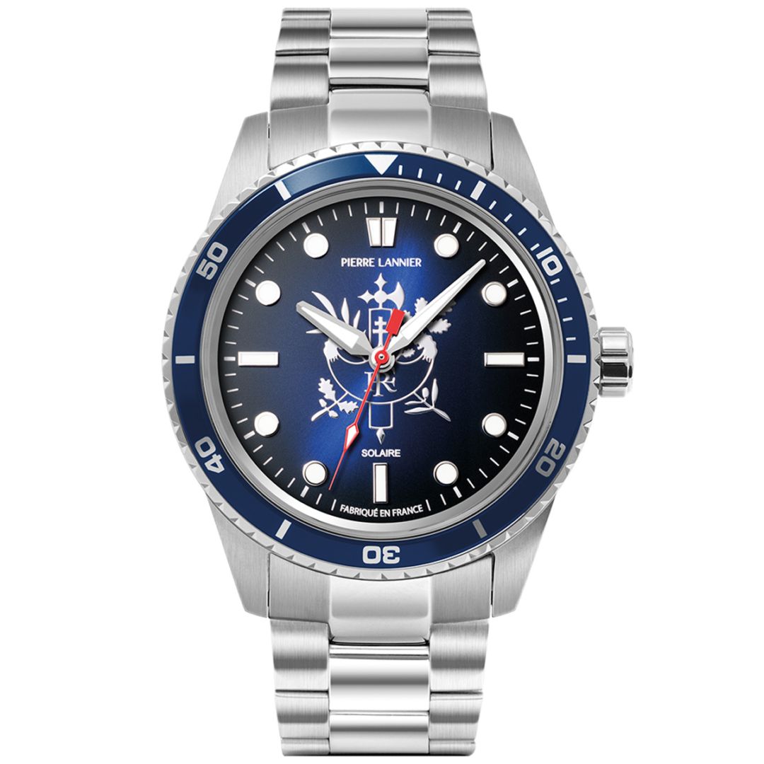 ピエールラニエ×エリゼ ソーラー メンズ 腕時計 メタルベルト 青 文字盤 電池交換不要