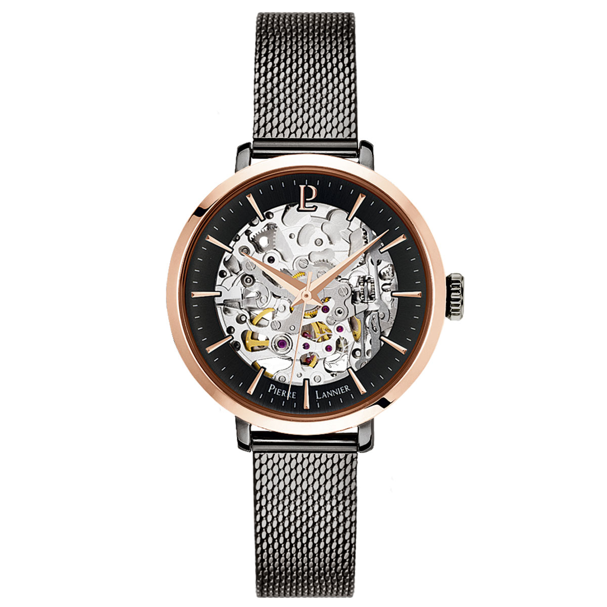 Automatic 自動巻き スケルトン レディース 腕時計 金属ベルト ピンクゴールド チャコールグレー 文字盤