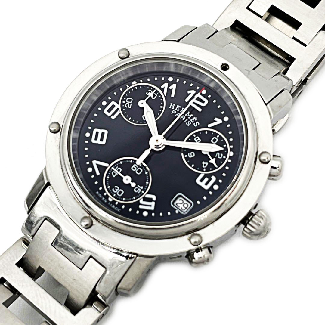 HERMES エルメス 腕時計 クリッパー クロノグラフ QZ シルバー ブラック CL1.310 ユニセックス