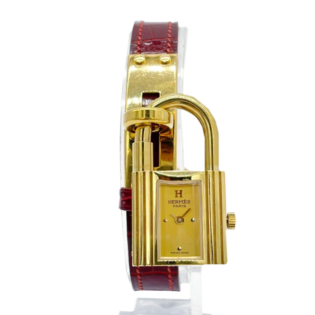 HERMES エルメス ケリーウォッチ 腕時計 GP クロコダイル QZ レッド ゴールド ○X刻印