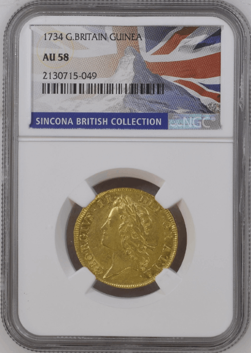 【動画あり】グレートブリテン 1734年 ジョージ2世 1ギニー金貨 NGC-AU58