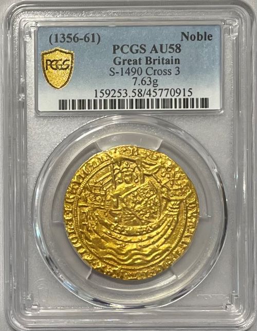 【動画あり】アンティークコイン グレートブリテン 1356-61年 エドワード3世 1ノーブル金貨 PCGS-AU58