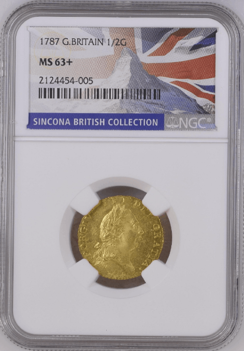 【動画あり】アンティークコイン グレートブリテン 1787年 ジョージ3世 1/2ギニー金貨 NGC-MS63+