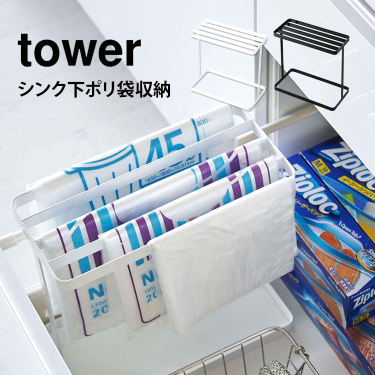 ポリ袋 収納 整理 便利 ゴミ袋 収納 タワー 山崎実業 tower ハンガー スタンド シンク下ポリ袋収納 ビニール袋 ストッカ...
