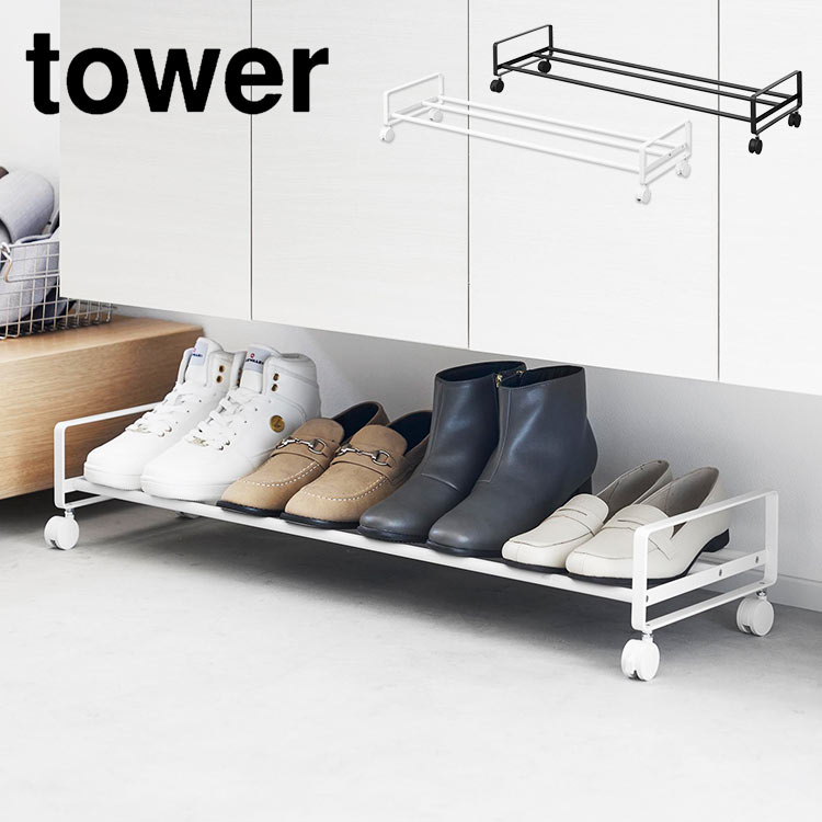 引き出せるキャスター付きシューズラック 山崎実業 タワー tower 1622 1623 スリム 薄型 大容量 下駄箱下 靴箱下 ...