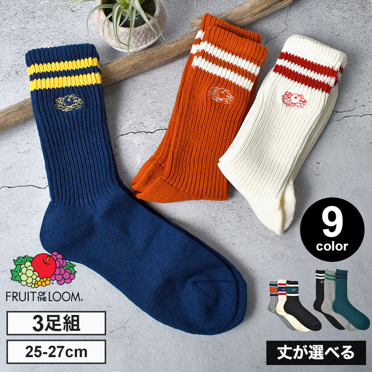 靴下 メンズ 3足セット フルーツオブザルーム ブランド 大学生 おしゃれ FRUIT OF THE LOOM クルーソックス ク...