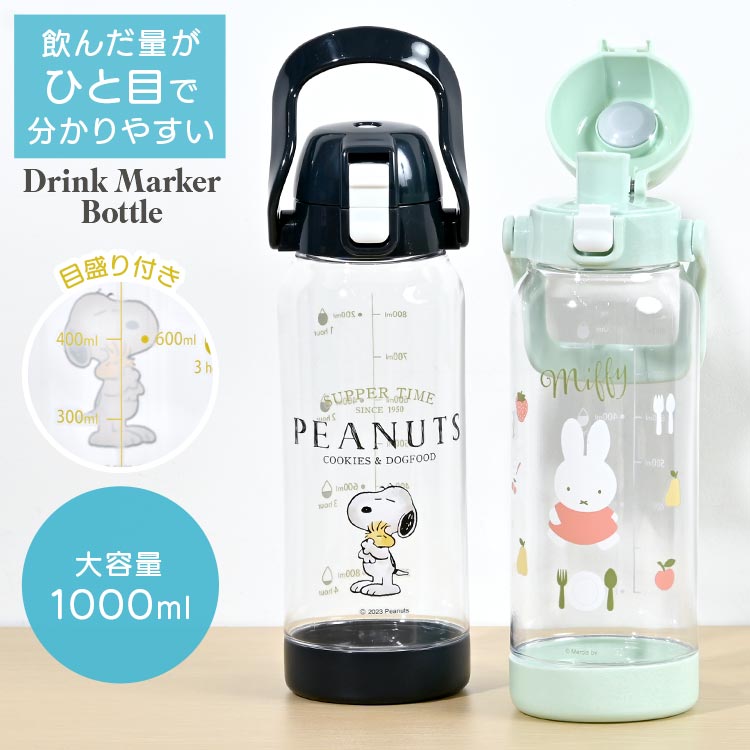 水筒 時間 目盛り 付き スヌーピー ミッフィー キッズ 直飲み 1リットル 女の子 男の子 子供 ドリンクボトル ウォーターボト...