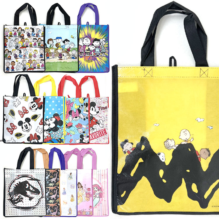 送料無料/ 不織布バッグ ハンドバッグ L スヌーピー プリンセス ジュラシック ディズニー キャラクター 手提げ袋 作品収納バッ...
