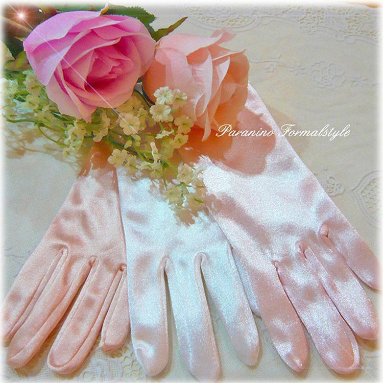 【売切価格】送料無料/ サテン ショート グローブ 子供 フォーマル ホワイト ピンク ピーチ