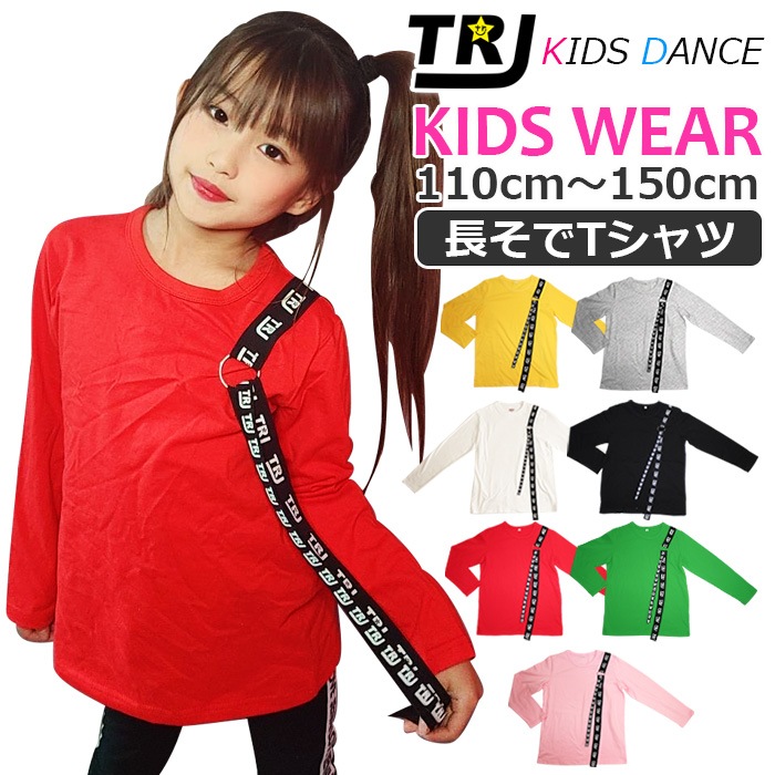 取寄せ4~5営業日で発送 TRJオリジナル キッズ ロンT ロゴテープ 長袖 Tシャツ 肩紐 リボン S/M/L 3サイズ 7カラ...