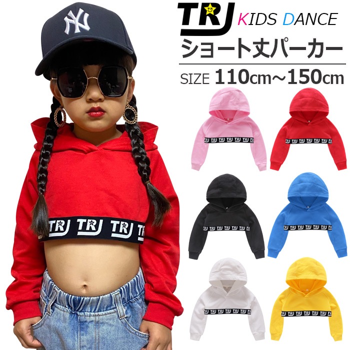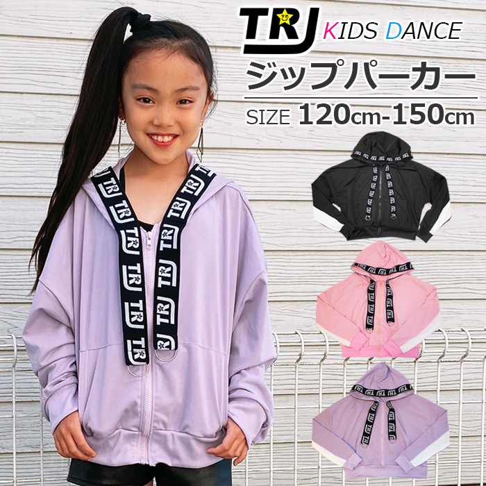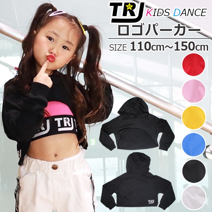 TRJオリジナル ショート丈 ロゴ テープ ダンスパーカー 長袖 トレーナー プルオーバー 秋冬コーデ 女の子 子供服 キッズ へ...
