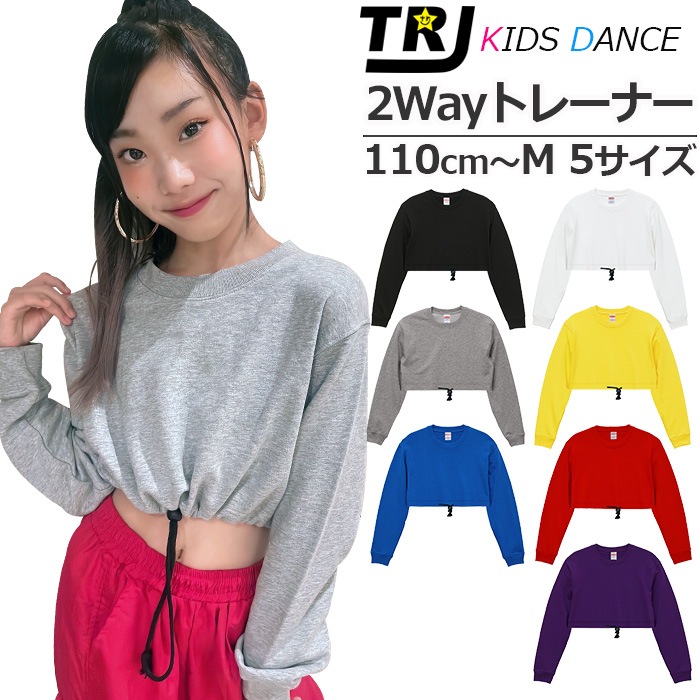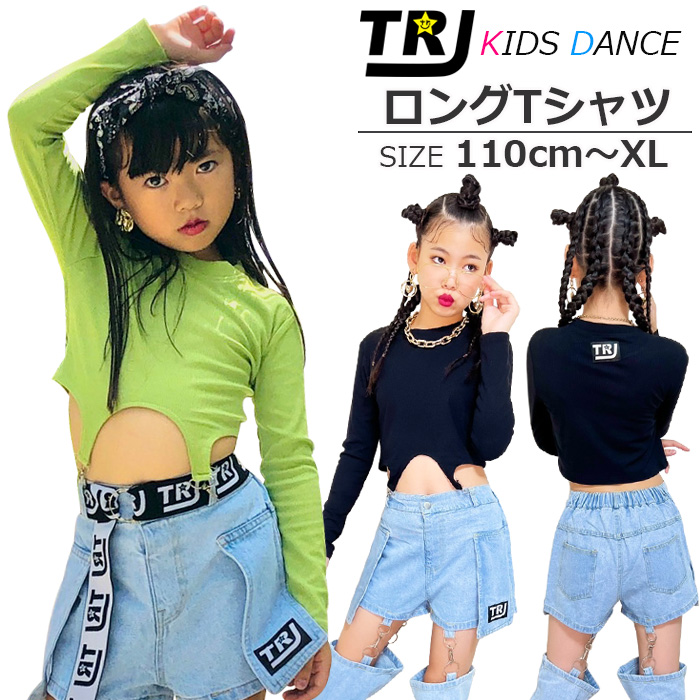 TRJオリジナル★ショート丈 ロングTシャツ 2WAY 長袖 トップス へそ出し 女の子 子供服 キッズ ロゴ ワンポイント 変形...