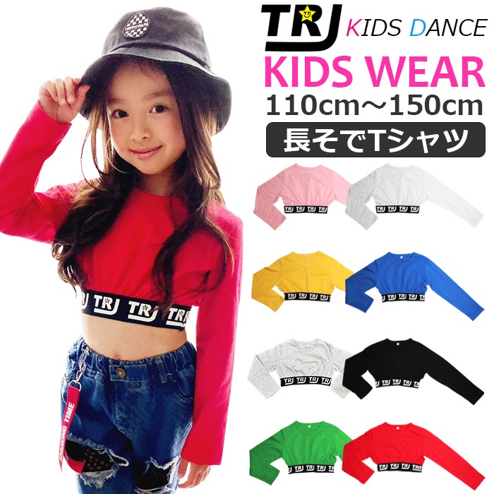 取寄せ4~5営業日で発送 ★TRJオリジナル★ キッズ用 ロンT ロゴテープ ショート丈 長袖 Tシャツ 肩紐 リボン S/M/L...