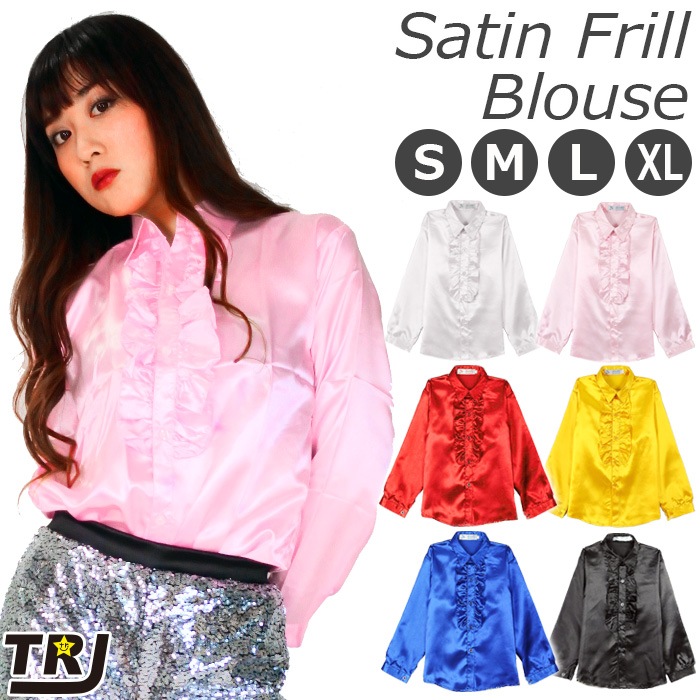 正午まで当日発送(土日祝除く) アウトレット品 サテン シャツ ブラウス Yシャツ フリル カラーシャツ ガールズ レディス キッ...