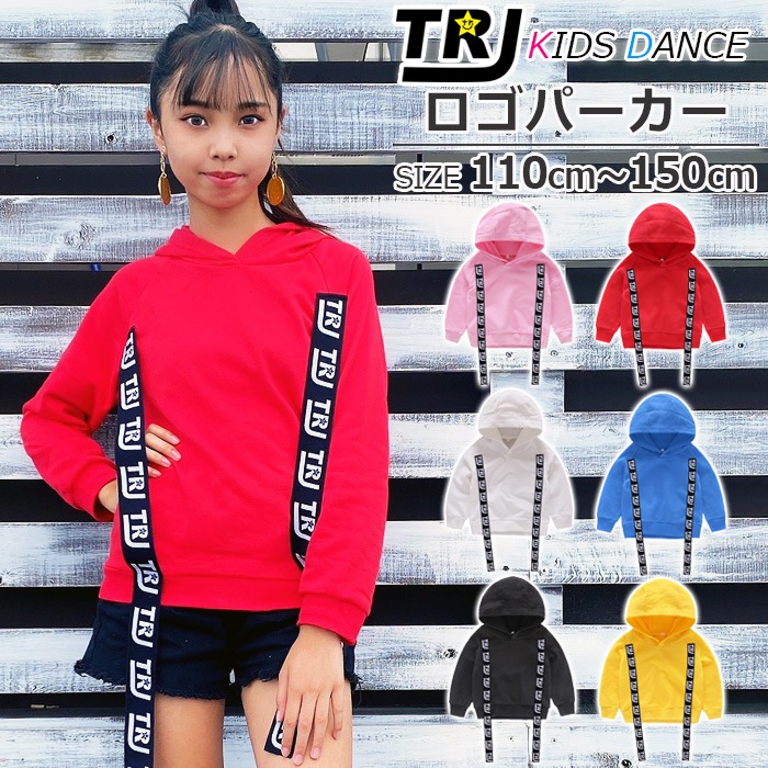 TRJオリジナル ロゴテープ サスペ風 ダンスパーカー 長袖 トレーナー プルオーバー 秋冬コーデ 女の子 男の子 子供服 キッズ...