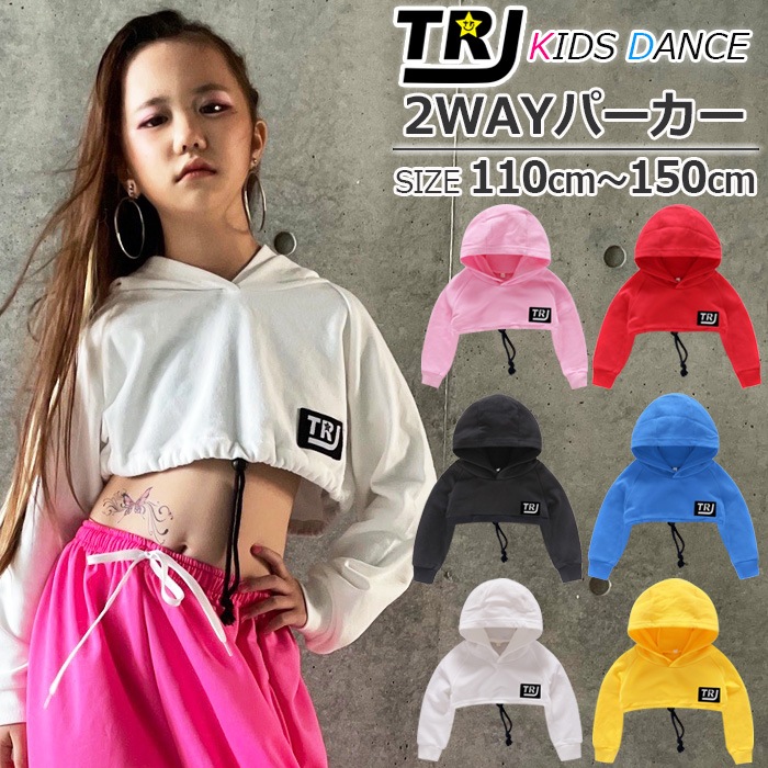 TRJオリジナル ショート丈 2WAY パーカー ロゴ 長袖 トレーナー プルオーバー 秋冬コーデ 女の子 子供服 キッズ へそ出...