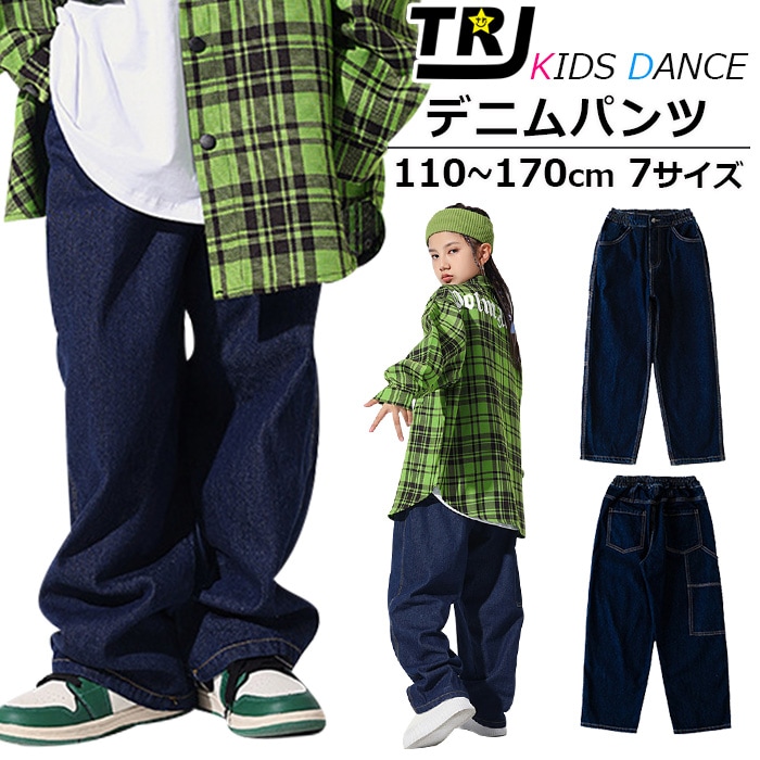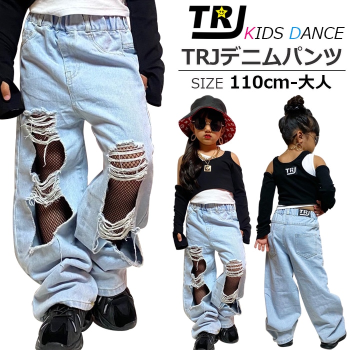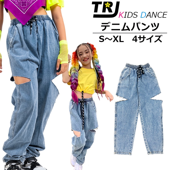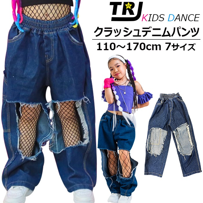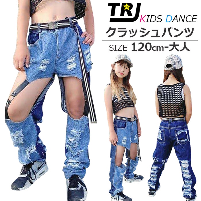 正午まで当日発送(土日祝除く)クラシュ デニム パンツ ダメージ ガーター ジーンズ ジーパン ヒップホップ ダンス衣装 キッズ ...