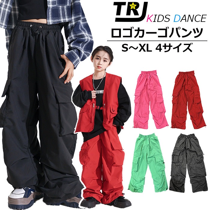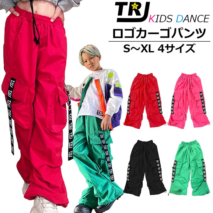 3~5日で発送予定(土日祝除く)ダンス パンツ カーゴパンツ ヒップホップ ロゴ テープ ピンク グリーン レッド ブラック キッ...