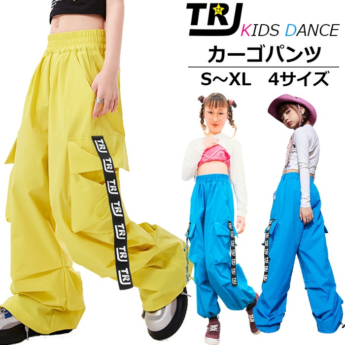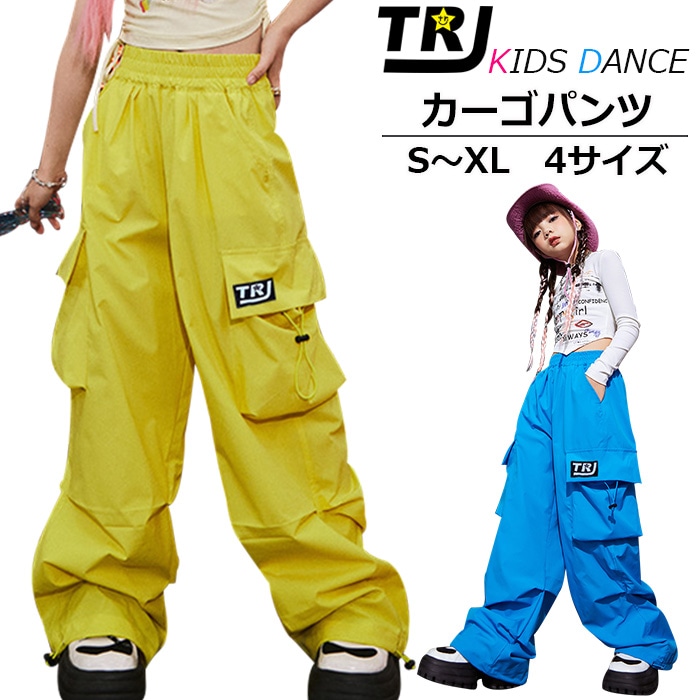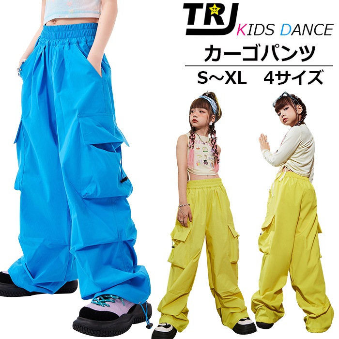 3~5日で発送予定(土日祝除く)キッズ カーゴパンツ ダンスパンツ カラーパンツ ヒップホップ ワンポイント 無地 イエロー ブル...