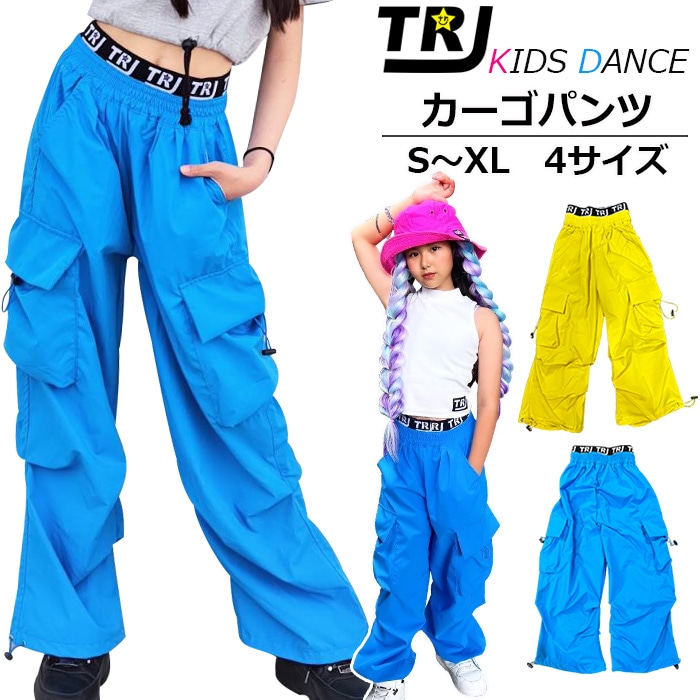 3~5日で発送予定(土日祝除く)キッズ カーゴパンツ ダンスパンツ カラーパンツ ヒップホップ ロゴ 無地 イエロー ブルー 11...