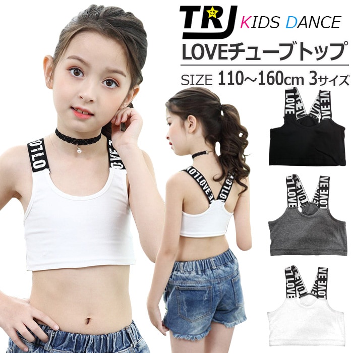 正午まで当日発送(土日祝除く) パット入り チューブトップ スポーツブラ LOVE 女の子 ブラック/ホワイト キッズ~大人 フリ...