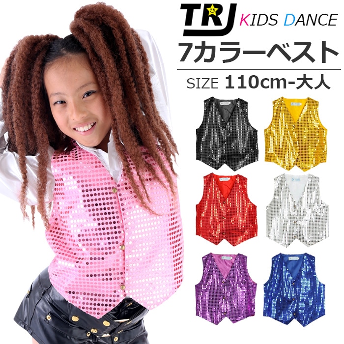 正午まで当日発送(土日祝除く)衣装 スパンコール 全7色 スパンコール ダンス衣装 べすと スパンコール ベスト キッズ ヒップホ...
