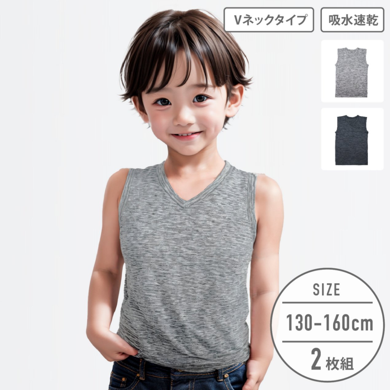 【男の子】ジュニアスリーブレス 2枚組 無地 130~160cm【吸水速乾】