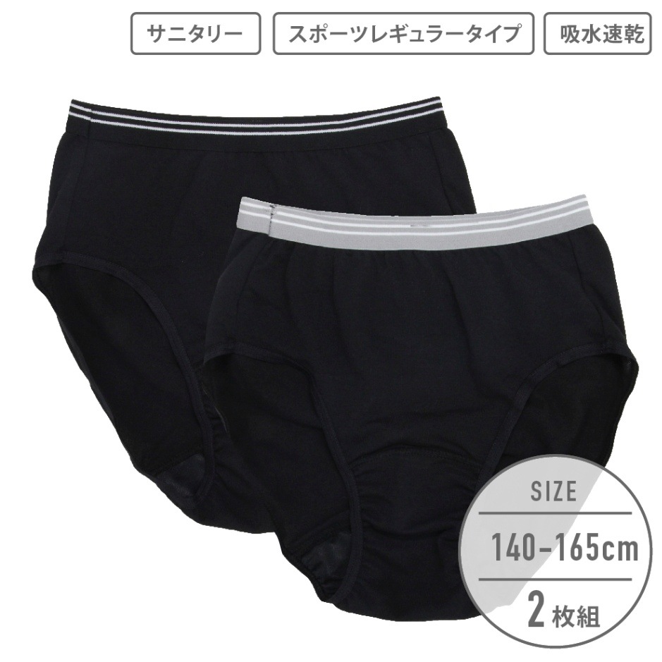 【女の子】ジュニアサニタリーショーツ 2枚組 スポーツレギュラータイプ 140~165cm【吸水速乾】