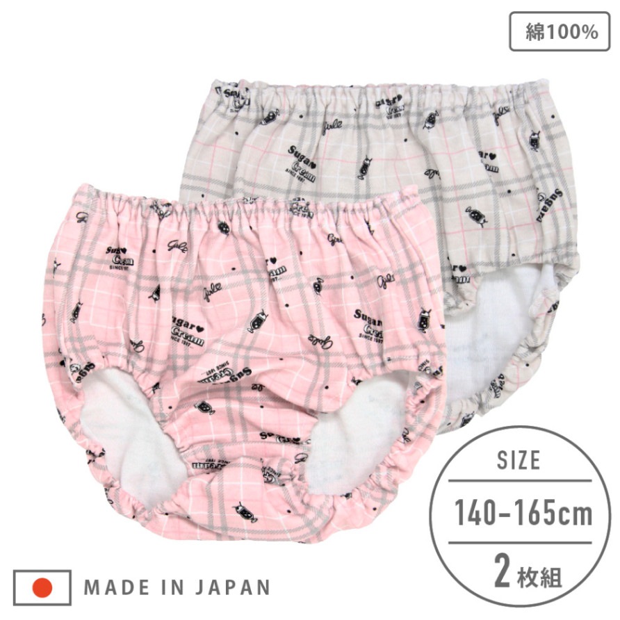 【女の子】【日本製】ジュニアショーツ 2枚組 チェック柄 140~165cm【綿100%】