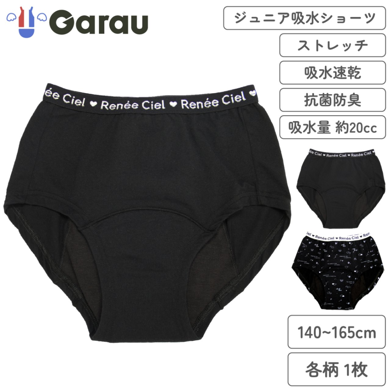 【女の子】ジュニア吸水ショーツ 1枚 無地/総柄 140~165cm【吸水速乾/抗菌防臭】