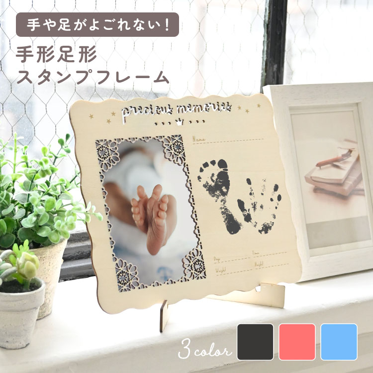 手形 足形 キット 汚れない スタンプ 木製スタンド 手形スタンプ 赤ちゃん スタンプパッド ベビー フォトフレーム おしゃれ 出...