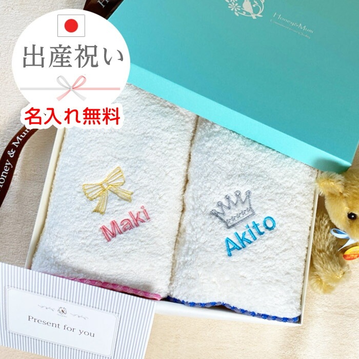 出産祝い 名入れ 双子 ふたご バスタオル 男の子 女の子 兄弟 姉妹 赤ちゃん 日本製 タオル 名前入り ギフトセット 祝い 赤...