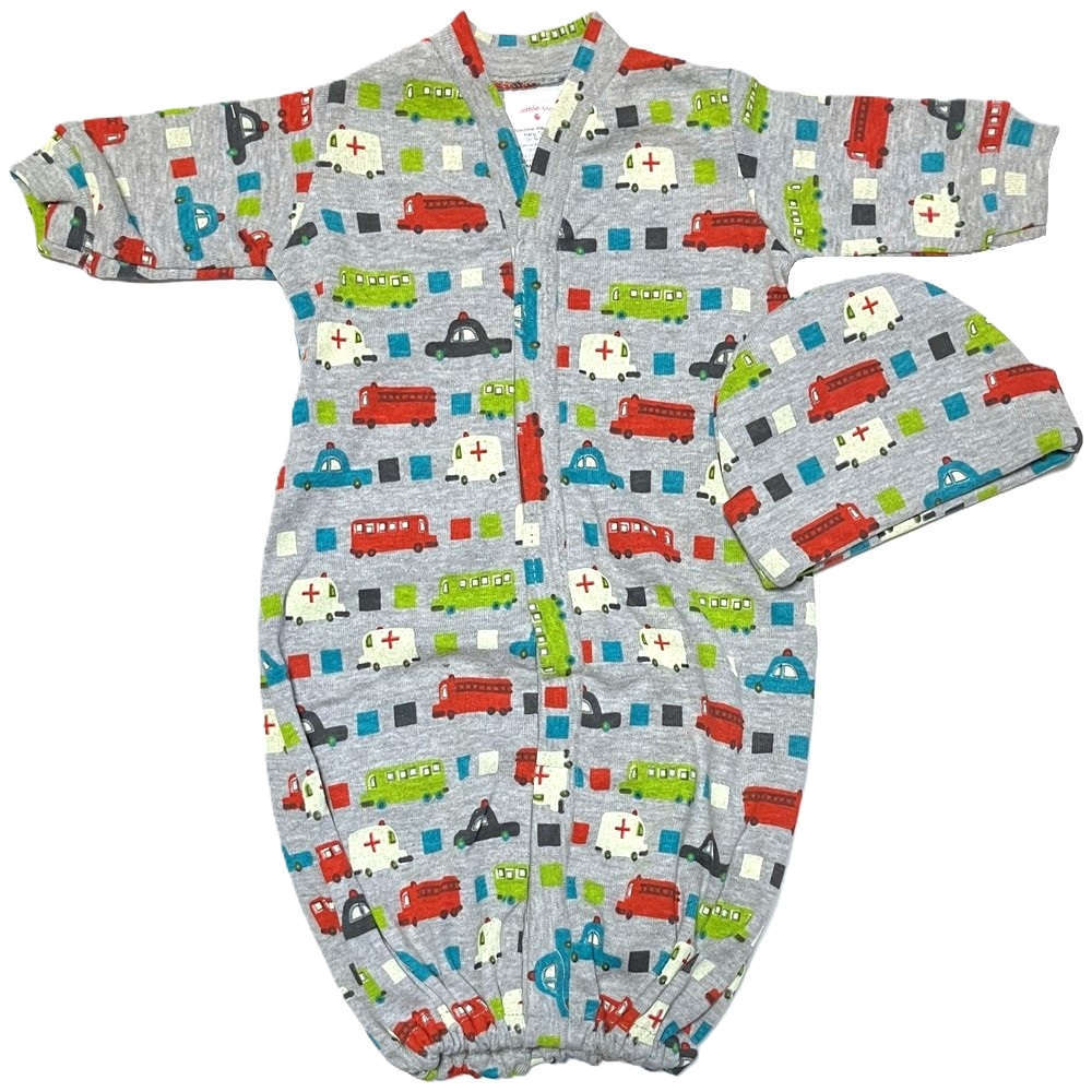 【未熟児】【低出生体重児】【早産児】【NICU】用 ベビー服:長袖ガウン くるま 帽子付き