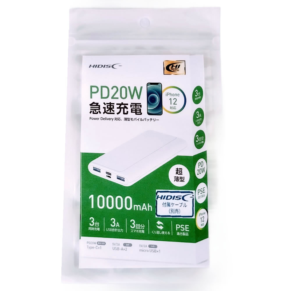 【リファービッシュ】 HIDISC PD20W QC3.0対応 10000mAh モバイルバッテリー ホワイト R-HD-PD20...