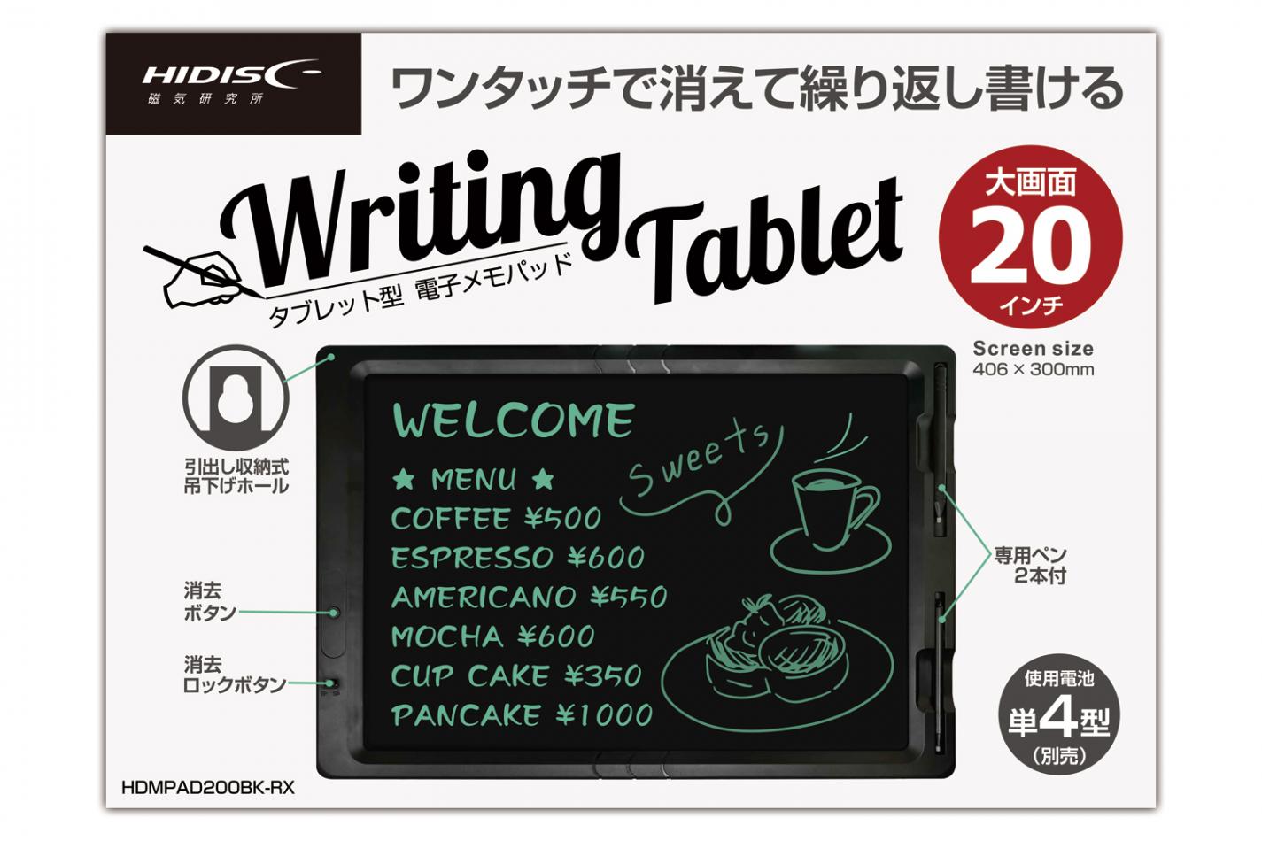 HIDISC 20インチ 電子メモパッド HDMPAD200BK-RX