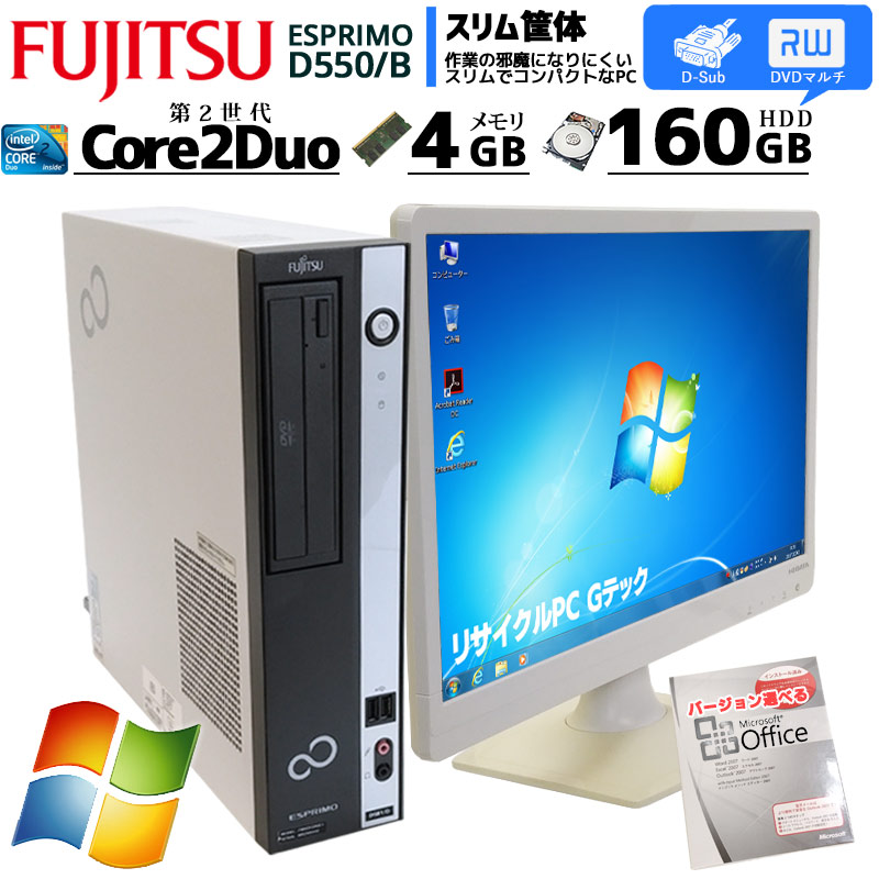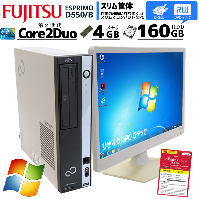 中古パソコン 富士通 ESPRIMO D550/B Windows7 Core2Duo E7500 メモリ4GB HDD160GB...