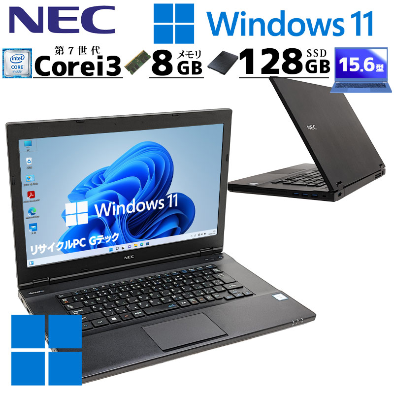 美品 中古ノートパソコン NEC VersaPro VK24L/AA-V Windows11 Pro Core i3 7100U ...