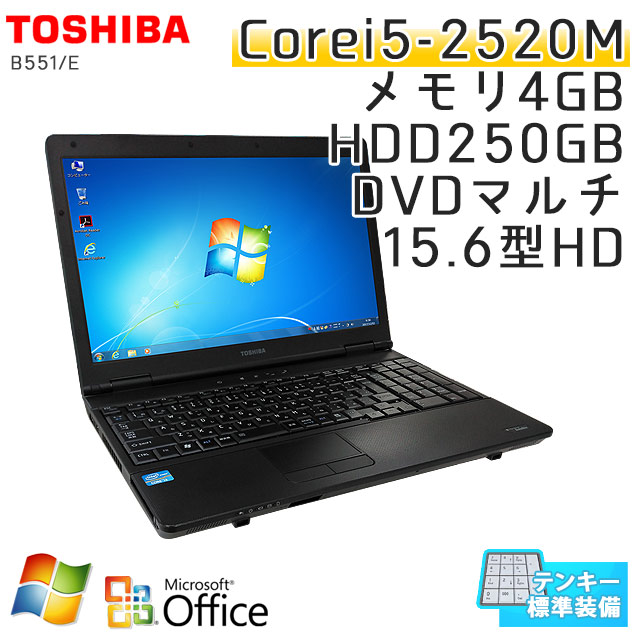 中古ノートパソコン Microsoft Office搭載 東芝 Dynabook B551/E Windows7 Corei5-2...