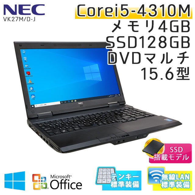 中古ノートパソコン Microsoft Office搭載 NEC VersaPro VK27M/D-J Windows10 Cor...