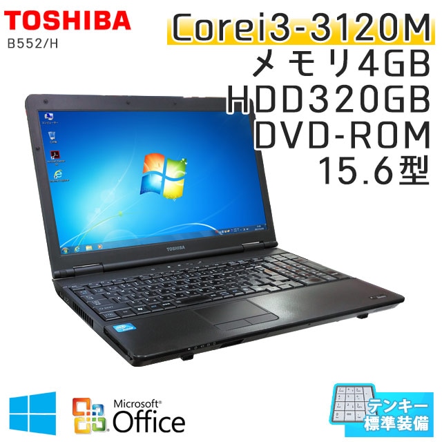 中古ノートパソコン Microsoft Office搭載 東芝 Dynabook B552/H Windows7 Corei3-2...